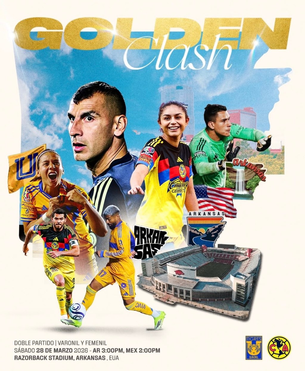 Los dos clubes más protagonistas del fútbol mexicano en los últimos 20 años , Club América y Tigres UANL, se enfrentarán este sábado 28 de marzo de 2026 en territorio estadounidense, en un evento sin precedentes que reunirá tanto a sus equipos varoniles como femeniles en una misma jornada.